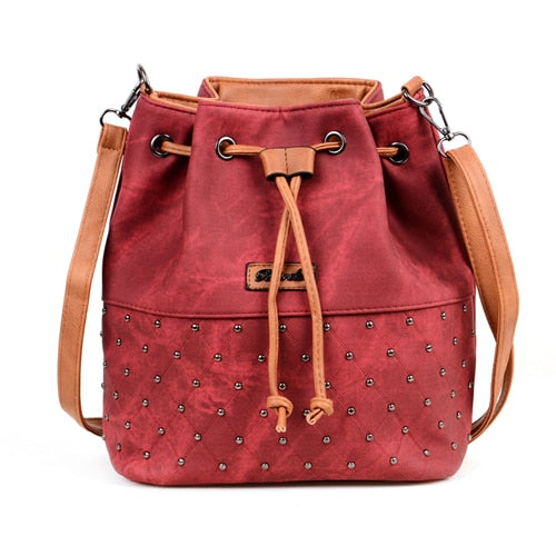 REPRCLA New Rivet Bucket Bag Zipper Women Shoulder Bag